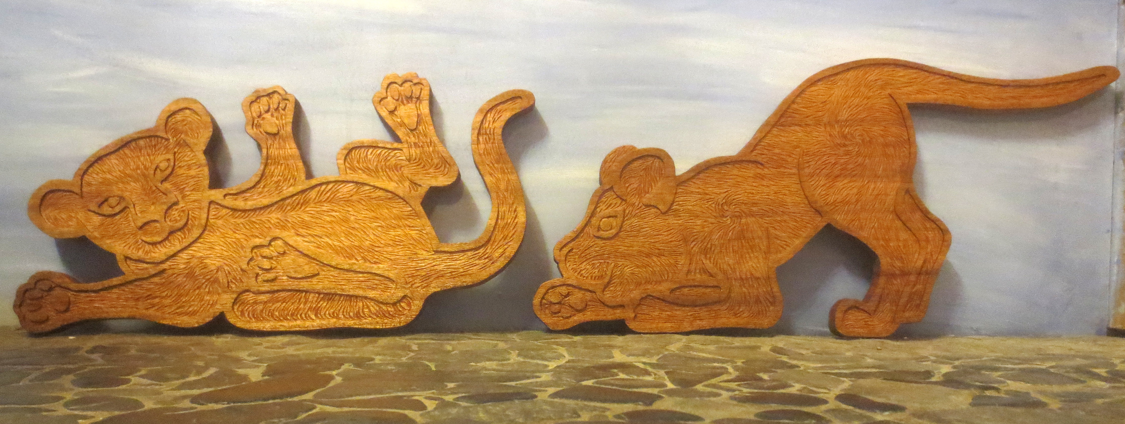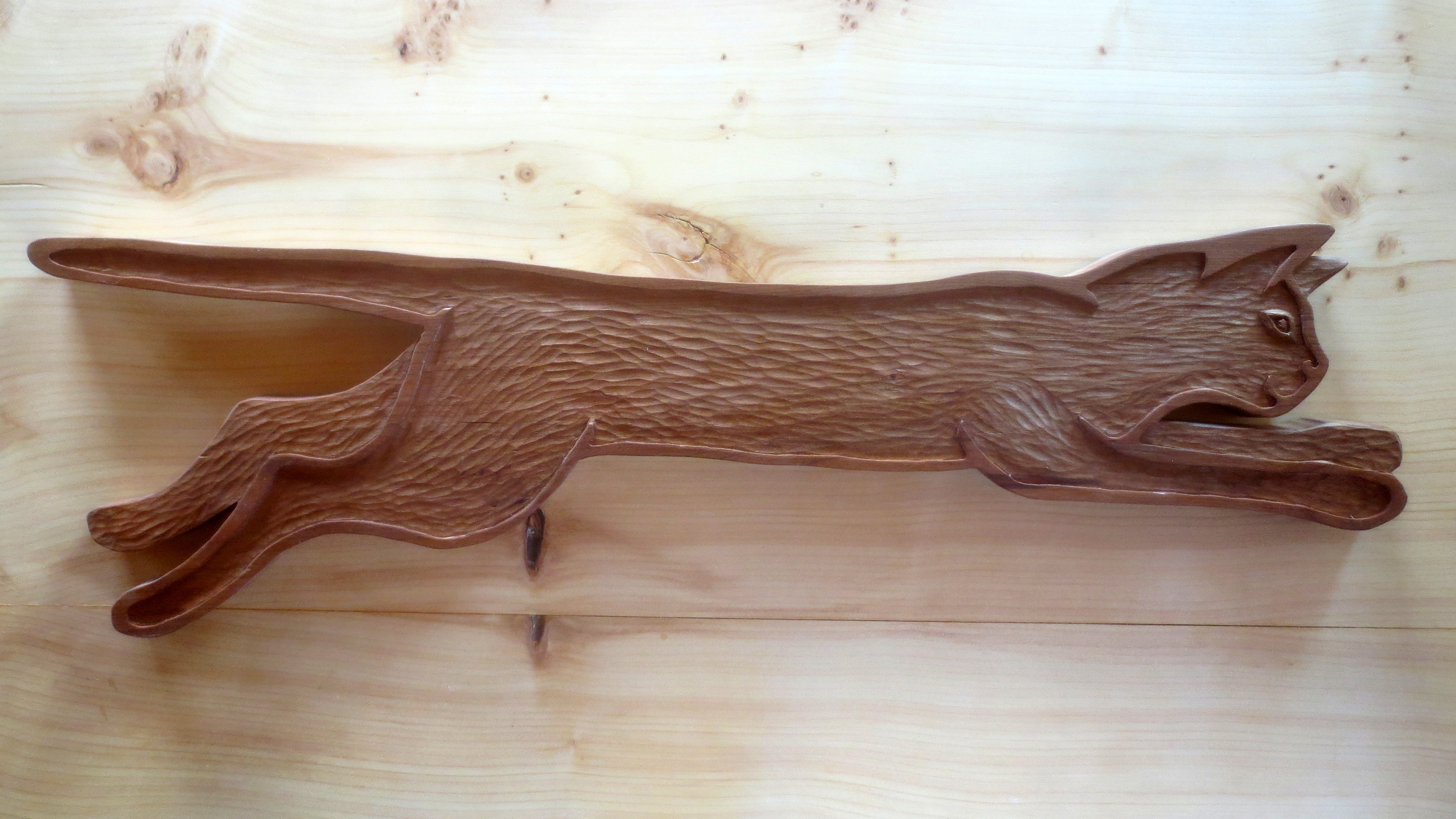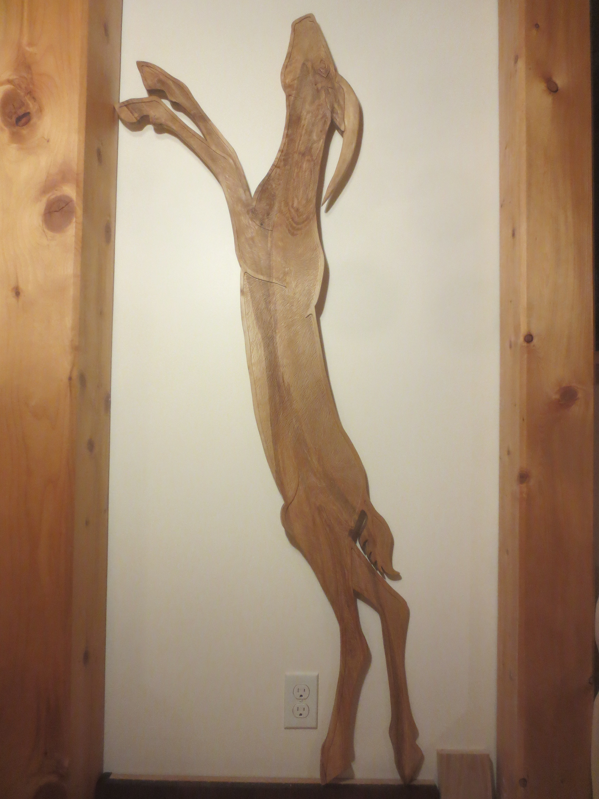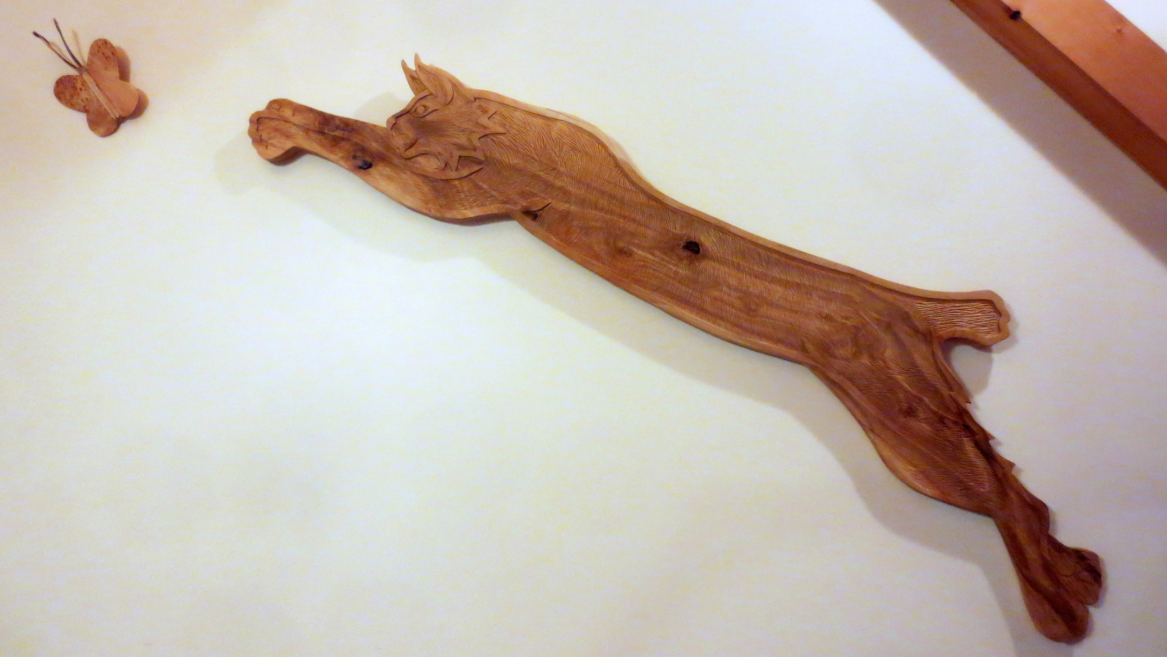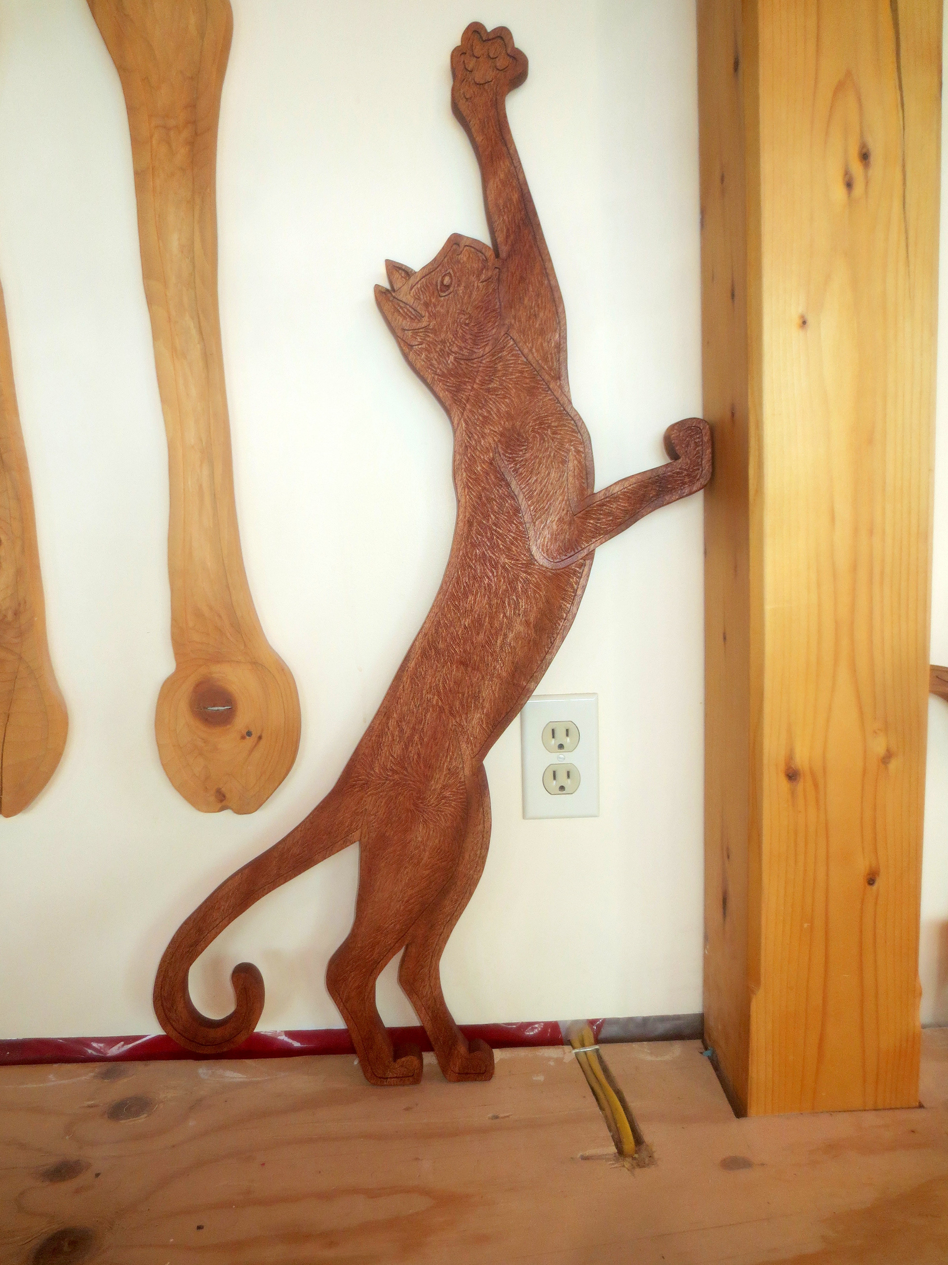 Each of the woodcarvings in my menagerie is made to "live" in a certain space. Whether it is waiting patiently for a friend's return, lounging on top of a window frame, or walking up a stairway, each one is meant to share a space and a moment with the people around it. I am happy to work with my clients to create a custom creature for a special person and place.