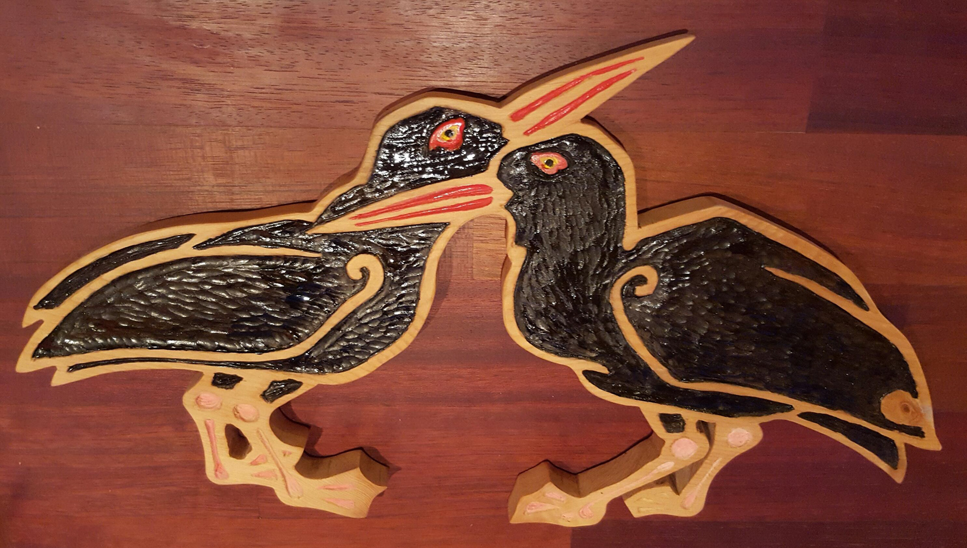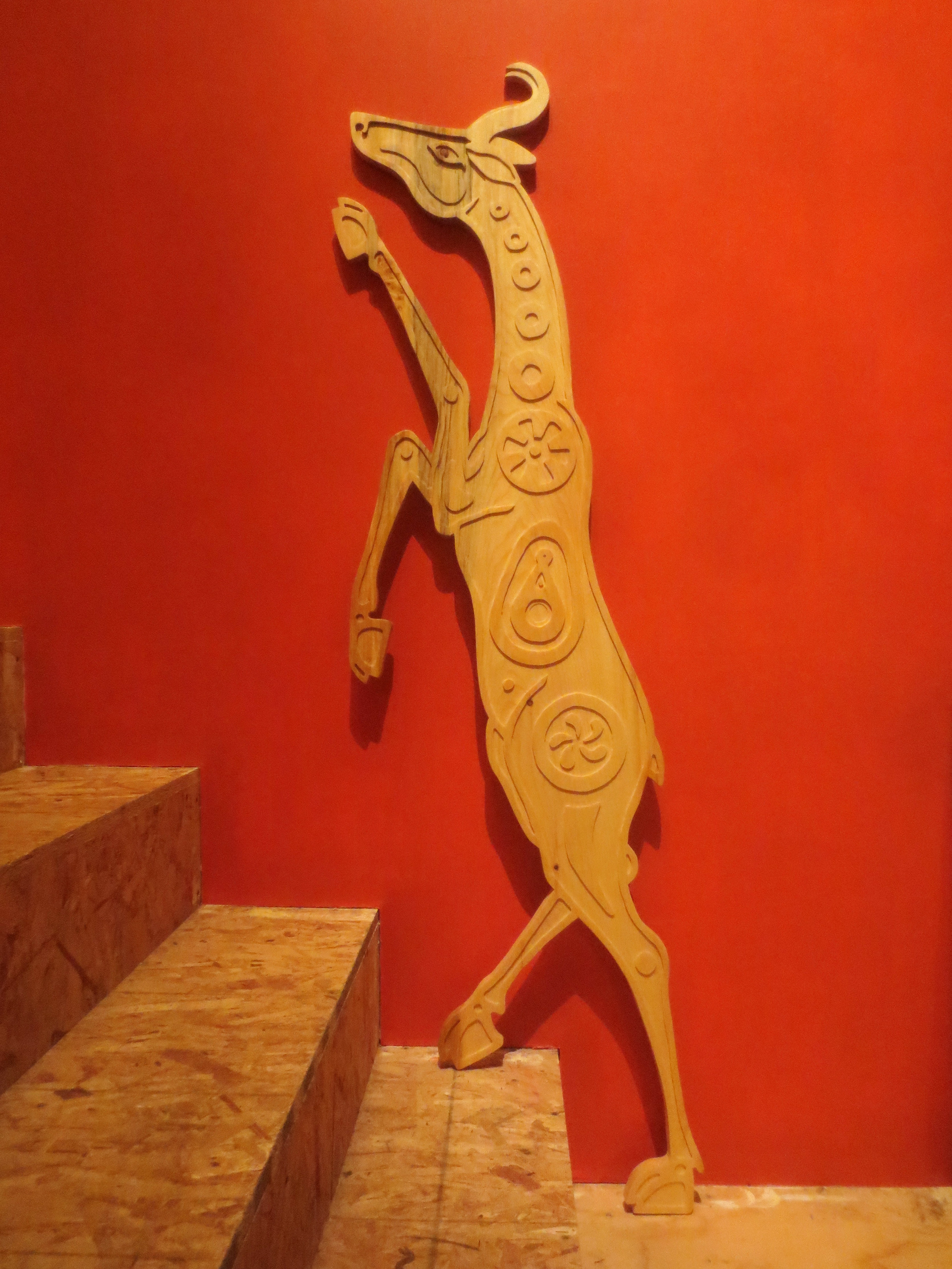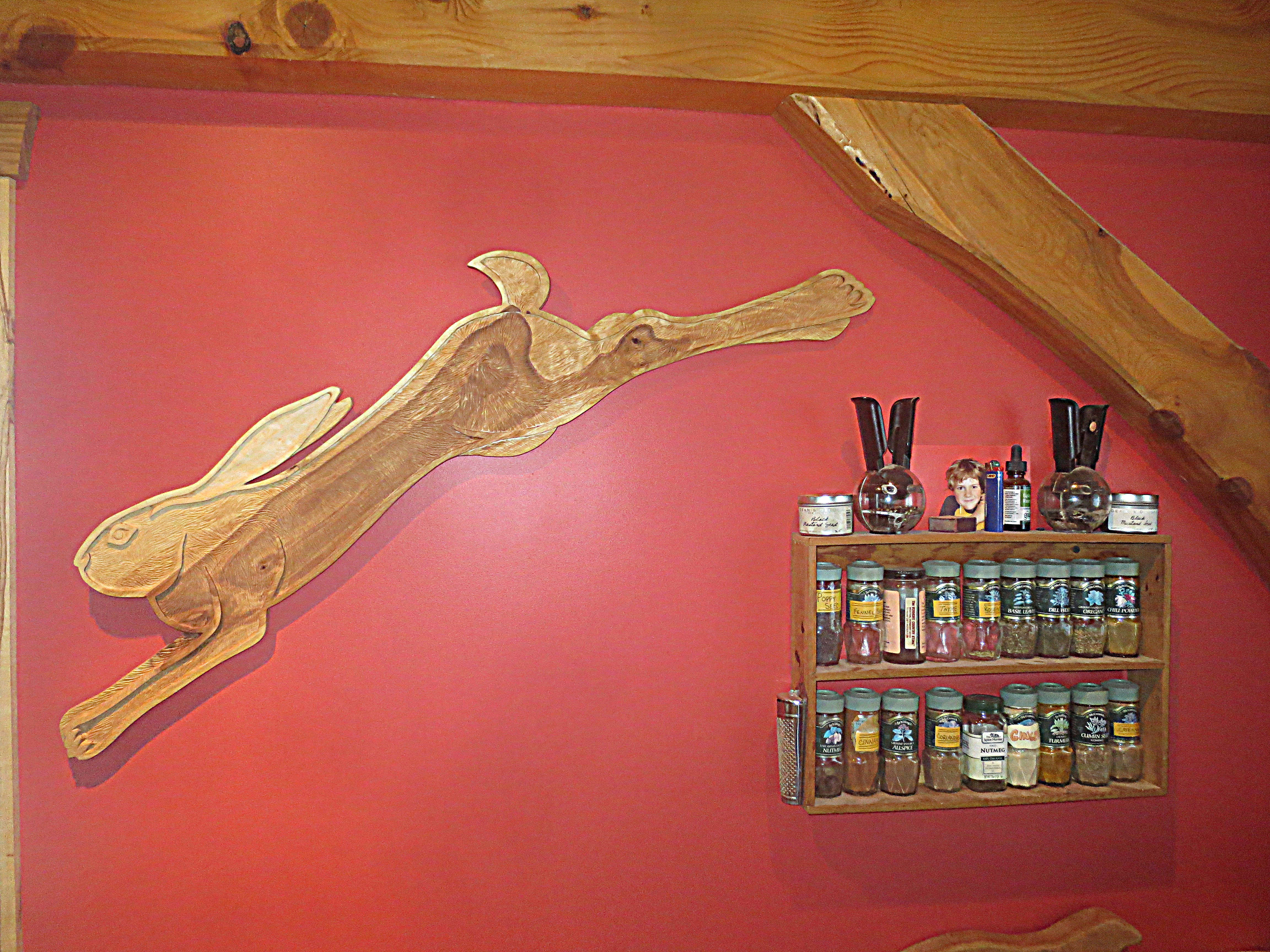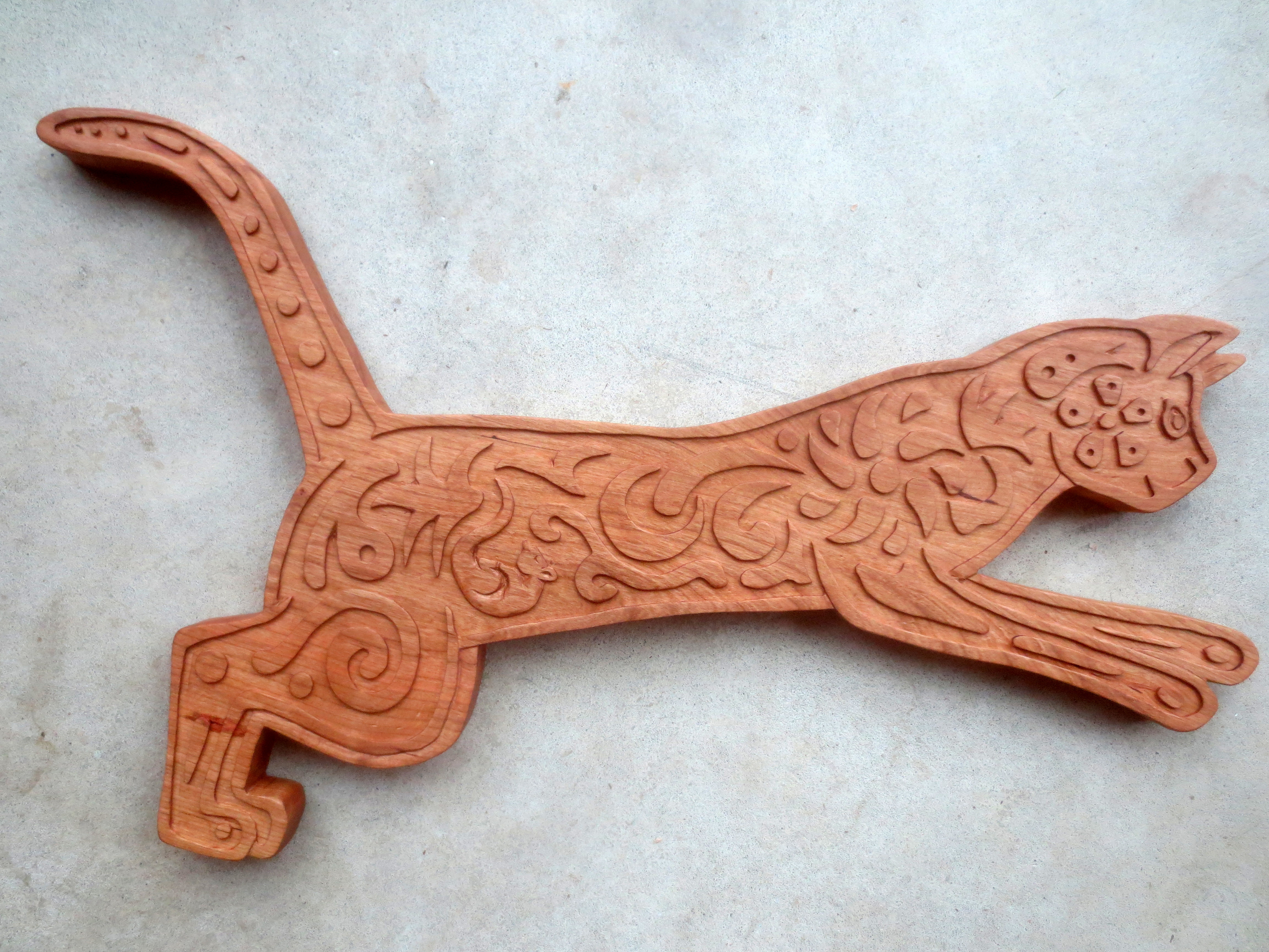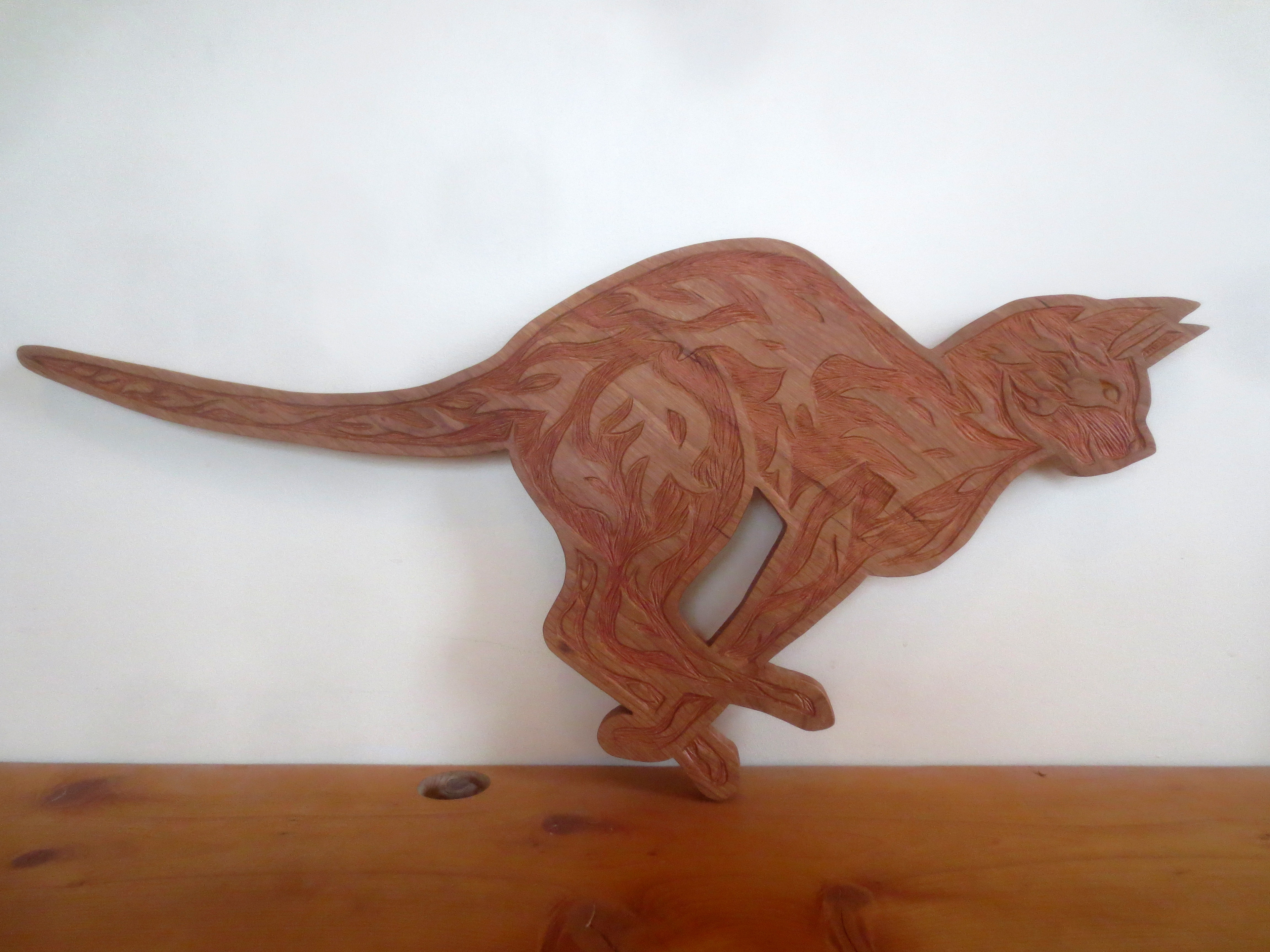 Each of the woodcarvings in my menagerie is made to "live" in a certain space. Whether it is waiting patiently for a friend's return, lounging on top of a window frame, or walking up a stairway, each one is meant to share a space and a moment with the people around it. I am happy to work with my clients to create a custom creature for a special person and place.